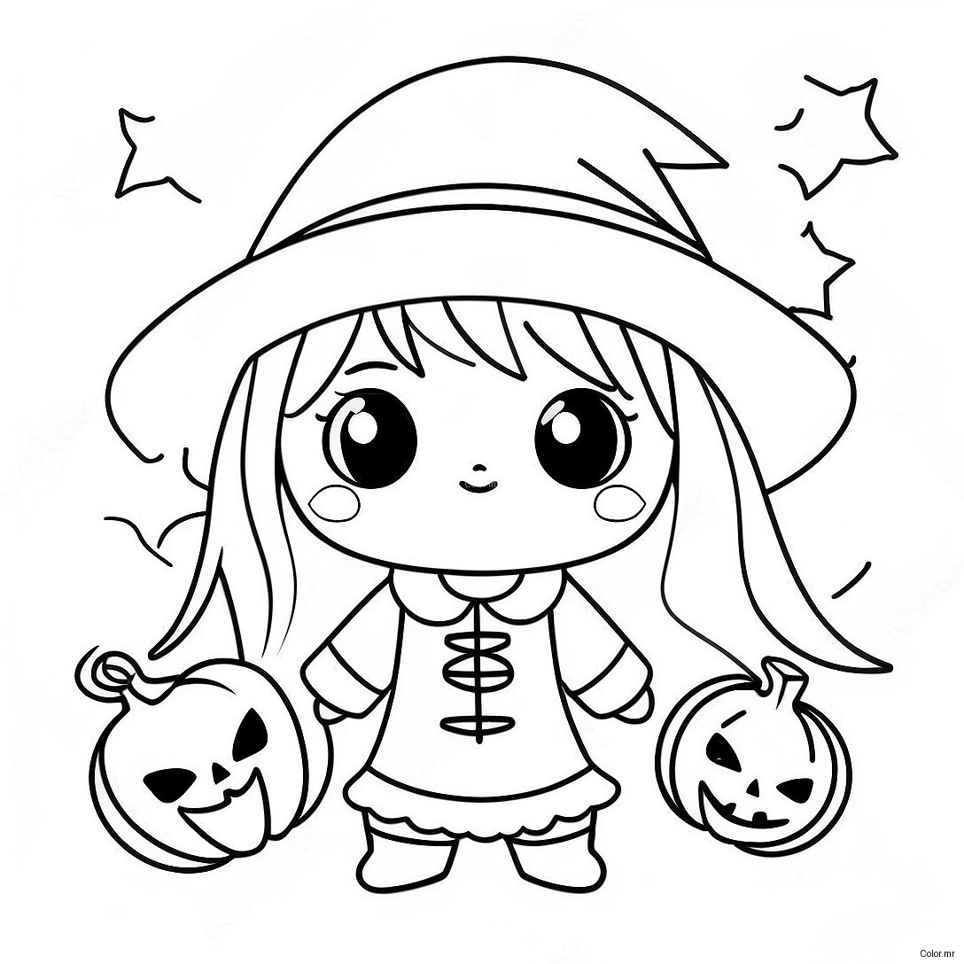 Scarica il PDF stampabile di Pagina Da Colorare Di Halloween In Stile Anime Scarica il PDF stampabile di Pagina Da Colorare Di Halloween In Stile Anime